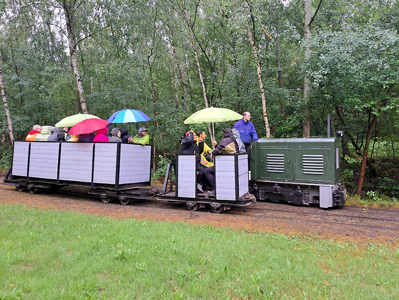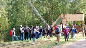 Zügen Fahrgäste nach Glossen. Der Eimerkettenbagger