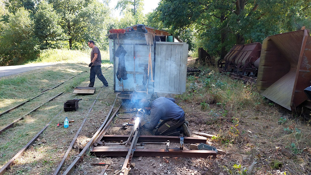 denen die Verteilung des Schotters sehr erleichtert wurde. Schweißen