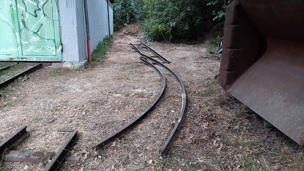 wurde der Bau des rechten Abstellgleises neben der Halle vorbereitet,