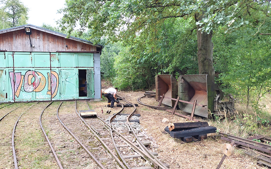 auf dem in Zukunft Loren unter einem Schleppdach geschützt