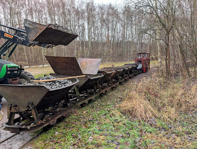 dass nichts neben die Loren fiel. Die bis zu zwölf Wagen