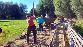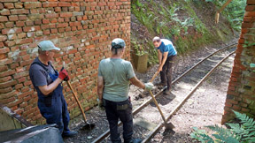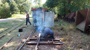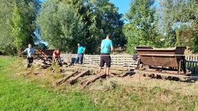 einer Lok aus dem Museum geschieht feldbahntypisch per Hand und