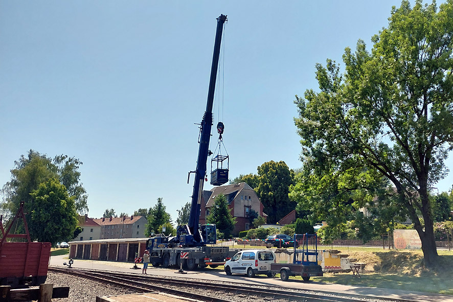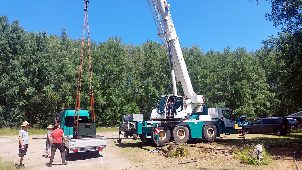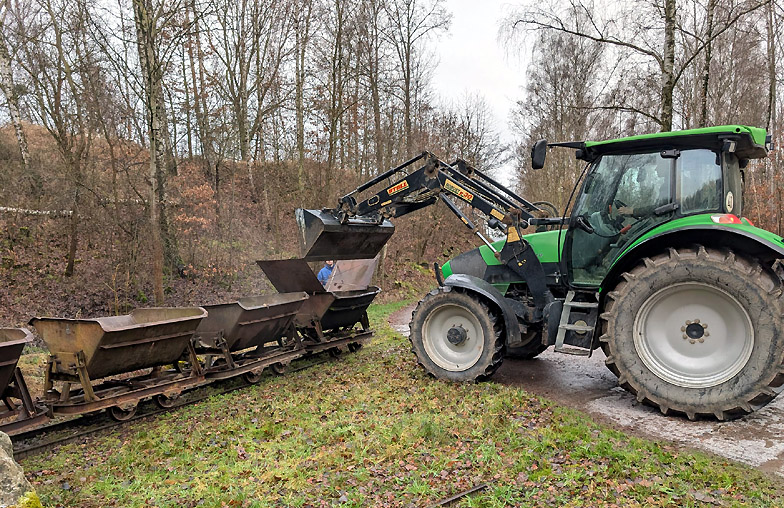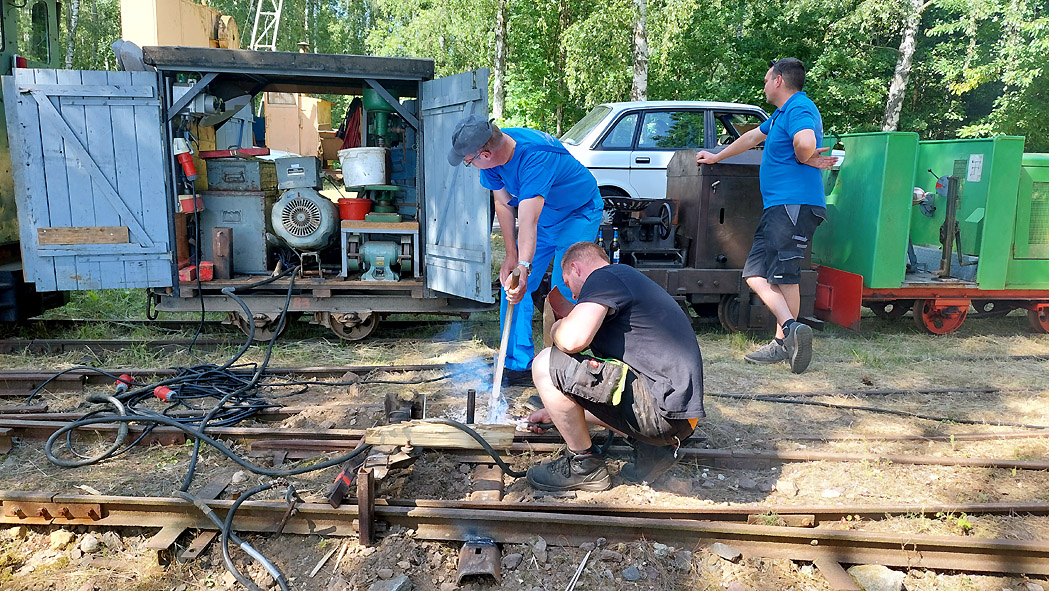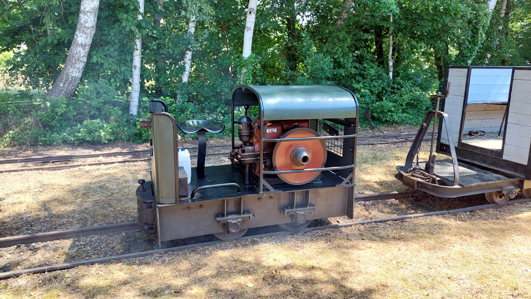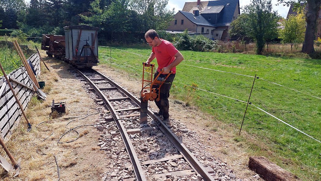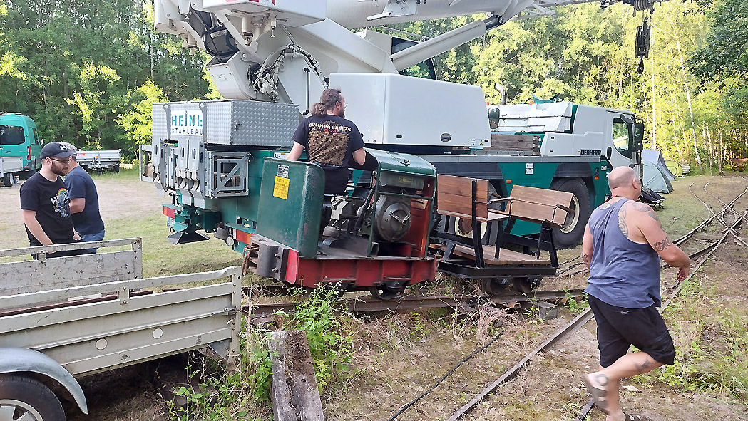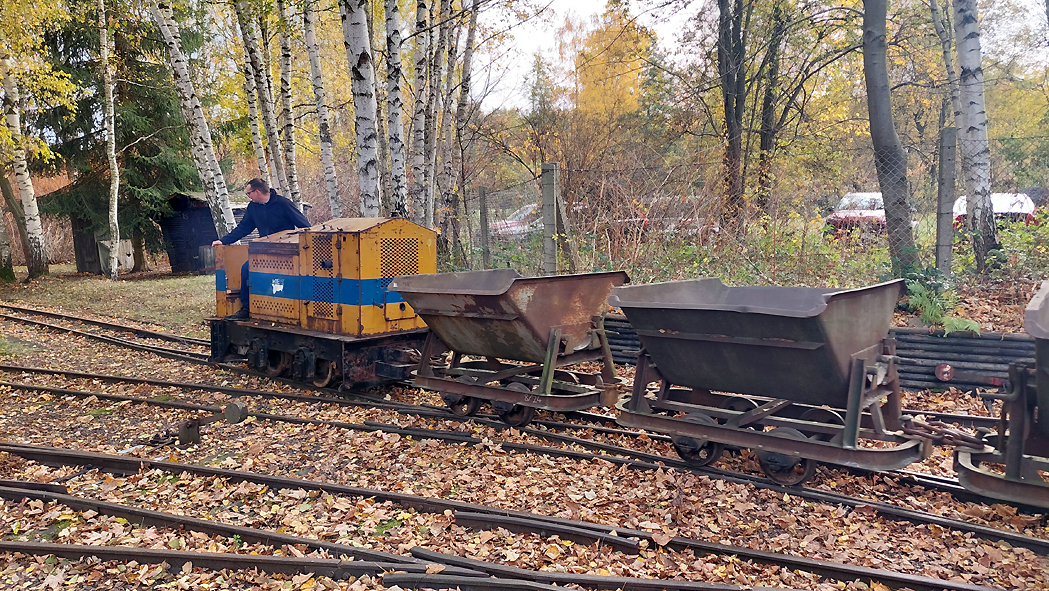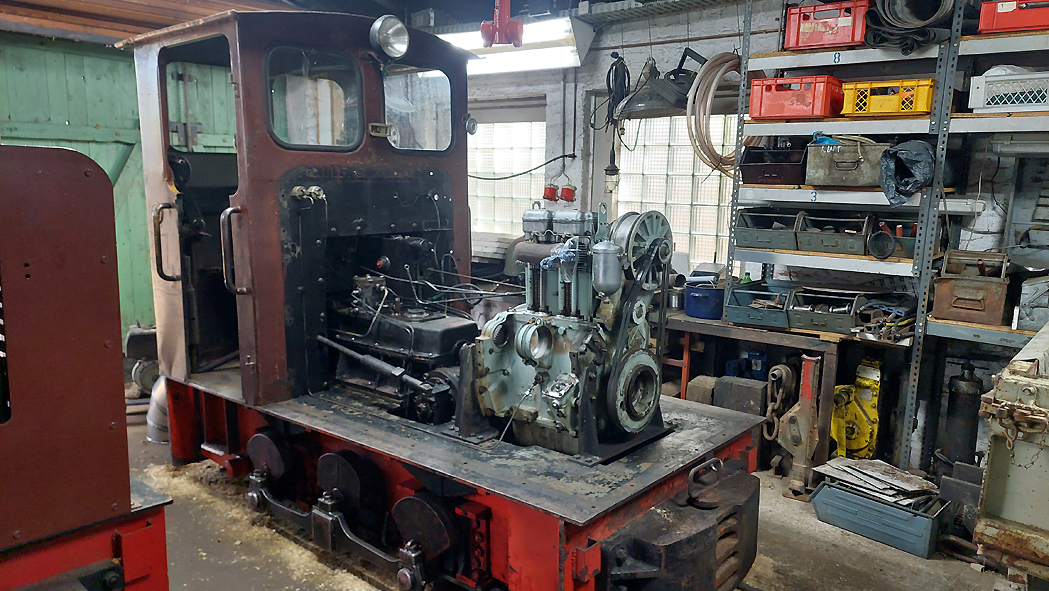 fertig gemacht werden: abgasfreie Rangierlok im Feldbahnmuseum.
