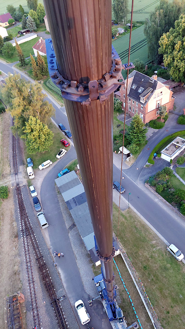 Fallrichtung wurde sie durch ein kräftiges Stahlseil nach
