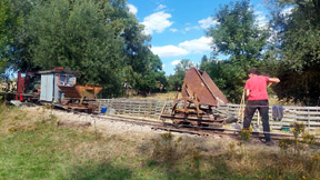 einer Lok aus dem Museum geschieht feldbahntypisch per Hand und